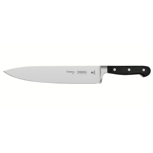Faca Chef Tramontina Century Lâmina Em Aço Inox Cabo De Policarbonato E Fibra De Vidro 10" 24011110 FACA CHEF TRAMONTINA CENTURY COM LÂMINA EM AÇO INOX E CABO DE POLICARBONATO E FIBRA DE VIDRO 10 24011110 Marca: Tramontina Modelo: Chef Tramontina Century com Lâmina em Aço Inox e Cabo de Policarbonato e Fibra de Vidro 10 polegadas 24011/110 DESCRIÇÃO DA FACA CHEF TRAMONTINA COM LÂMINA EM AÇO INOX E CABO DE POLICARBONATO E FIBRA DE VIDRO - Seja você chef ou cozinheiro por hobby, garantimos que você entende a importância de utensílio de alta qualidade na sua cozinha, não é mesmo? - Por isso, a linha Century desenvolveu uma faca ideal para o uso intenso: a Faca Chef Tramontina Century com Lâmina em Aço Inox e Cabo de Policarbonato e Fibra de Vidro 10 polegadas. - Uma peça única, que recebe materiais de alta qualidade na sua produção, passando por um processo de fabricação rigoroso que a torna altamente durável, oferecendo ainda mais precisão no corte. - A Faca Tramontina Chef é produzida com lâmina em aço inox, com cabo em policarbonato com fibra de vidro. - Além disso, recebe tratamento térmico composto por têmpera (aquecimento da lâmina), sub- (resfriamento de -50 C a -196 C) e revenimento (aumento da flexibilidade do aço especial), proporcionando vida longa da lâmina. - Para tornar o manuseio ainda mais e confortável, o cabo é anatômico e ergonômico. - Faça diferente na sua cozinha, escolha Tramontina.