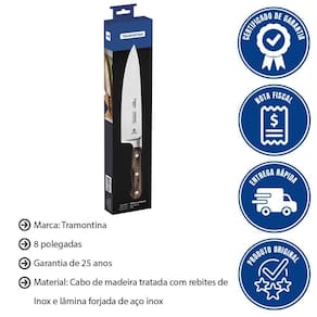 - Ideal para chefs exigentes e amantes da culinária, a Faca Chef Tramontina Century Wood é a escolha perfeita para elevar suas habilidades culinárias.