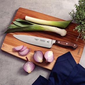 - Seu cabo é em madeira tratada com rebites de aço inox e proporciona toda a segurança e conforto que você necessita na hora de cortar, fatiar e picar os alimentos, seja você profissional ou amador na culinária.