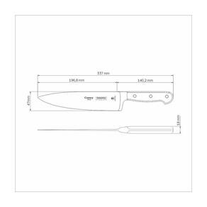 Faca Chef Tramontina Century Wood Com Lâmina Em Aço Inox E Cabo De Madeira Tratada Castanho 8 Polegada Faca Chef Tramontina Century Wood com Lâmina em Aço Inox e Cabo de Madeira Tratada Castanho 8 Com a faca chef Tramontina Century Wood com lâmina em aço inox e cabo de madeira tratada castanho 8 polegadas você terá em suas mãos uma verdadeira obra-prima culinária. Ela possui lâmina forjada de aço inox especial forjada com precisão, garantindo assim, um excelente poder de corte e ótima durabilidade do fio. Seu cabo é em madeira tratada com rebites de aço inox e proporciona toda a segurança e conforto que você necessita na hora de cortar, fatiar e picar os alimentos, seja você profissional ou amador na culinária. A faca chef Tramontina Century Wood é extremamente prática e lhe garante mais tempo em outras tarefas, pois pode ser levada à máquina de lavar louças, facilitando na hora da limpeza. Sem dúvida, a escolha perfeita para aprimorar suas habilidades na cozinha e criar verdadeiras obras-primas gastronômicas!