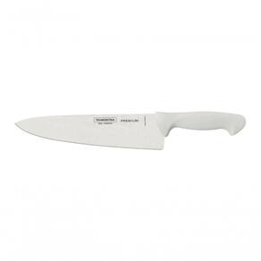 Faca Chef Tramontina Premium Com Lâmina Em Aço Inox E Cabo De Polipropileno Branco 10" As facas da linha Premium Tramontina tem lâmina de aço inoxidável e cabo anatômico, tornado seu uso diário fácil e prático.- Linha PREMIUM. Recomendações de Uso: Antes do uso: Antes de utilizar o , remova as eventuais etiquetas e lave-o com água quente e de uso:Durante a lavagem use somente esponja macia, outros tipos de produtos, como palha de aço, poderão riscar ou prejudicar o brilho do aço inox. Enxágue bem a peça a fim de remover totalmente os resíduos dos produtos de limpeza, que por serem abrasivos, podem danificar o inox. Após a lavagem enxugue a faca, pois as substâncias químicas contidas na água poderão causar manchas. Sempre que possível use água quente, pois renova o brilho do talher. Evite o das peças com superfícies quentes, pois podem provocar a descoloração do produto. Quando usar a máquina de lavar louça, recomendamos retirar o talher logo que tenha terminado o ciclo enxaguar, a fim de que os mesmos sejam secados manualmente.- Tenha cuidado ao Manusear produtos cortantes e perfurantes e mantenha-os fora do alcance de crianças.- Foto meramente ilustrativa.- Embalagem blister. Informações Adicionais: