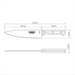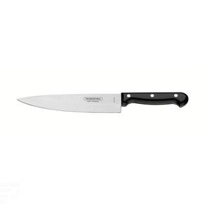 Sofisticação e bom gosto para realizar as melhores receitas. Com a Faca Chef Tramontina Ultracorte com Lâmina em Aço Inox e Cabo de Polipropileno Preto 8 Polegadas da Linha Ultracorte você vai encontrar essas e outras características de qualidade. Projetada para diferentes exigências na cozinha, atende os mais diferentes tipos de alimentos. Produzida com lâmina de 8 polegadas em aço inox, ela recebe tratamento térmico para dar maior durabilidade ao fio de corte. O cabo em polipropileno na cor preta, possui proteção antibacteriana, que inibe o crescimento de bactérias e fungos. Fácil de limpar, pode ser usada na máquina de lavar louças. Sinta-se um chef com esse produto essencial para sua cozinha. Orientações Possui toda a versatilidade da protagonista da cozinha.A lâmina de aço inox têm maior durabilidade do fio devido ao tratamento térmico. O cabo de polipropileno possui maior resistência e durabilidade. E conta com proteção antimicrobiana, que inibe e reduz o crescimento de bactérias e fungos proporcionando benefícios em higiene e redução de microorganismos que causam contaminação. Esta ação dura por toda a vida útil dos produtos, mas não elimina a necessidade de limpeza.Rebites de alumínio.Pode ir à máquina de lavar louças facilitando seu dia a dia. Características Gerais EAN13 7891112068292 DUN14 17891112068299 NCM 8211.92.10 Peso Líquido 0,1150 kg. Peso Bruto 0,1300 kg. Metragem 0,000608 m³. Dimensões Embalagem (Compr. X Larg. X Alt.) 20x 80x 380 mm. Dimensões Produto (Compr. X Larg. X Alt.) 332x 44x 20 mm. Cor 1 000000 Hexa Observações Antes da primeira utilização, lave bem a peça e seque-a. Produto cortante e perfurante: tenha cuidado ao manusear e mantenha fora do alcance das crianças. Para maior durabilidade do produto recomenda-se secar bem antes de guardar, mesmo após lavagem em máquina. Recomenda-se o uso de tábuas de polipropileno ou madeira da Tramontina para maior durabilidade do fio da faca. Não é indicado o uso da faca para o corte de alimentos congelados. Mantenha sempre sua faca afiada utilizando os afiadores da Tramontina.Para descarte dos produtos e embalagens siga as orientações de reciclagem vigentes.