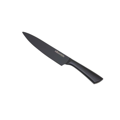 A Faca Para Chefe foi produzida em Inox de alta qualidade na cor Preta, material de alta resistência. Produto bonito, durável, prático e funcional.Perfeito para compor seus utensílios.Tamanho: 4,5 x 32 x 2 cmLitragem: 8" cmPeso: 130 grLâmina: 20 cmDicas de conservação: não utilize produtos abrasivos.Imagem ilustrativa, podendo ter variação na cor, em razão da iluminação da foto. Ean: 7908216110793