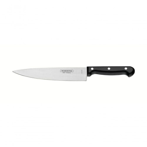 Faca Chefe Tramontina Ultracorte 8" Inox Preta A linha Ultracorte possui a faca certa para o corte certo. Trazpraticidade para o dia-a-dia, preservando as particularidades dosalimentos, deixando seus pratos deliciosos e conquistando a todos. Recomendações de Uso: Antes do uso: Antes de utilizar o , remova as eventuais etiquetas e lave-o com água quente, detergente e enxugue-a de uso:Após cada uso, lave o produto. Durante a lavagem use somente esponja macia e detergente, outros tipos de produtos, como palha de aço, poderão riscar a superfície do produto. Enxágue bem a peça a fim de remover totalmente os resíduos dos produtos de limpeza. Pode ser lavada à máquina de lavar louças. Após a lavagem enxugue-o bem com toalha de pano. cuidado ao manusear produtos cortantes e perfurantes e mantenha-os fora do alcance de crianças.- Foto meramente ilustrativa. Informações Adicionais:
