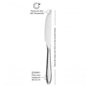Os talheres da linha Lyon têm traços simples, leves e elegantes, podendo compor desde cozinhas mais descontraídas até as sofisticadas. As facas de mesa são perfeitas para compor a mesa no almoço ou no jantar. Temperadas, as facas não danificam pratos de porcelana. Feitos em aço inox, os produtos são resistentes à oxidação e podem ser levados à lava-louças.