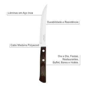 Você que precisa de talheres de qualidade na hora seus convidados e principalmente para o dia a dia! Agora você tem a Faca de Churrasco Tramontina Polywood Inox Cabo Castanho de 5 polegadas, seu churrasco no jantar ou almoço terá o charme e a qualidade que você merece.Com lâmina produzida em aço inox com tratamento térmico, a faca possui fio de alta durabilidade e resistência.Possui cabo em madeira tratada Polywood que proporciona a combinação perfeita de material e cor, ideal para ambientes residenciais e comerciais.Além de tudo isso, pode ir à máquina de lavar louças facilitando seu dia a dia ainda mais.Este modelo é ideal para festas, restaurantes, buffet, bar e hotéis. Legal né? Compartilhe com seus Amigos!Características do produto:Lâmina: Em Aço Inox;Cabo: Madeira Polywood Castanho.Dimensões Produto (Compr. X Larg. X Alt.):Comprimento: 21,2 cmLargura: 1,0 cmAltura: 1,9 cmTAGS e palavras chave do produto:Restaurantes, Talheres, Faqueiro, Atacado, Buffet, Bar, Hotel, Faca de Serra, Faca de Serrinha, Faca de Churrasco, Faca Para Churrasco, Faca de Mesa, Faca Para Carne 5 Polegadas, Talher, Talheres Uso Diário, Jogo de Talheres, Faqueiro, Jogo de Faqueiros, Jogo de Facas, Conjunto de Facas, Cabo Castanho, Tramontina, Polywood, Castanho, Cabo de Madeira.*imagens ilustrativas.Os objetos que ambientam as imagens, não acompanham o produto. Fique atento: As cores das imagens podem sofrer alterações devido a luminosidade, configurações do monitor e até mesmo a percepção do usuário.