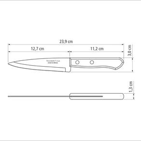 A Faca de Cozinha Tramontina Dynamic em Inox com Cabo de Madeira 5 possui lâmina de aço inox, ideal para diversos usos na cozinha, seja cortando legumes frescos, carne suculenta ou até mesmo fatiando pães. Garante cortes uniformes e eficientes, tornando o preparo dos alimentos uma verdadeira experiência prazerosa.O cabo de madeira natural não só confere um toque de elegância à faca, mas também proporciona uma empunhadura confortável e segura. Com rebites de alumínio, o cabo é firmemente fixado à lâmina, garantindo estabilidade e durabilidade incomparáveis. Adquira já a sua Faca de Cozinha Tramontina Dynamic e experimente o verdadeiro prazer de cozinhar!