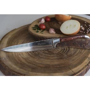 Faca de Cozinha Laguiole LA TOUR(tm) Ultra Premium. Toda a tradição das facas Laguiole é encontrada nesta linha. A lâmina é feita em aço inoxidável de altíssima qualidade com cabo em Madeira. Uma obra-prima aperfeiçoada por 200 anos de destreza dos melhores artesãos franceses. O design atemporal dos produtos Laguiole La Tour trazem um toque de elegância e de requinte às mesas de jantar e às cozinhas mais exclusivas do planeta. Descrição: -materiais: Madeira e Aço Inox -tamanho: 36cm x 7cm x 3,5cm - Cor: Marrom -peso: 0,260g -utilização: De preferência por não usar maquina de lavar-louças.