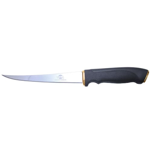 Desenvolvido especialmente para limpeza de peixes e para filetar, a Faca Gold Fish apresenta design moderno com cabo Soft Grip e lâmina curva, que permite alta precisão no corte, atendendo as necessidades dos usuários mais exigentes. - Marca: Guepardo - Modelo: CB0700 Características - Material: Aço inoxidável 420/Cabo em ABS - Dureza rockwell: 52HRC - Lâmina curva, maior precisão no corte. - Cabo Soft Grip: confortável e aderente reduz o deslizamento na empunhadura. - Especial para limpeza de peixes e para filetar. - Design moderno. - Possui bainha em material sintético com passador. Dimensões - Lâmina: 15,5cm - Cabo: 11,5cm - Tamanho Total: 27cm Marca: Não Informado Ean: 7898471192804