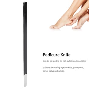-?CUIDADOS COM A SAÚDE DOS PÉS?A faca de pedicure de aço pode ser usada para lixar unhas, cutículas e pele morta, o que pode fazer com que você tenha unhas e pele saudáveis.