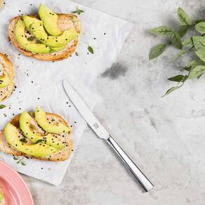 Composição: - 1 Faca de Sobremesa Ponta arredondada : 21cm; tamanho lâmina 10,4 cm e espessura 7,7 mm