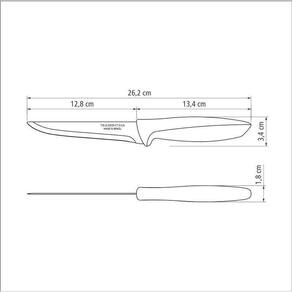 Faca para Desossar Tramontina Plenus com Lâmina em Aço Inox e Cabo de Polipropileno Preto 5 Tenha em sua cozinha a Faca para Desossar Tramontina Plenus com Lâmina em Aço Inox e Cabo de Polipropileno Preto 5 Polegadas da Linha Plenus. Ideal para limpeza de ossos e tirar gorduras, ela auxilia você nas receitas com diferentes tipos de carnes. Possui uma resistente lâmina de 5 polegadas em aço inox e cabo de polipropileno na cor Preto. É um produto que traz conforto e praticidade para as tarefas na cozinha. Linha Plenus é a Tramontina pensando no melhor para sua cozinha Ideal para separar a carne dos ossos e tirar a gordura. A lâmina de aço inox têm maior durabilidade do fio devido ao tratamento térmico. O cabo de polipropileno possui maior resistência e durabilidade. Pode ir à máquina de lavar louças facilitando seu dia a dia. Uso seguro e adequado: Antes da primeira utilização, lave bem a peça e seque-a. Produto cortante e perfurante: tenha cuidado ao manusear e mantenha fora do alcance das crianças. Para maior durabilidade do produto recomenda-se secar bem antes de guardar, mesmo após lavagem em máquina. Recomenda-se o uso de tábuas de polipropileno ou madeira da Tramontina para maior durabilidade do fio da faca. Não é indicado o uso da faca para o corte de alimentos congelados. Mantenha sempre sua faca afiada utilizando os afiadores da Tramontina. Para descarte dos produtos e embalagens siga as orientações de reciclagem vigentes. Garantia: 90 dias de garantia legal para vícios ou defeitos de fabricação. Ean: 7891112225718