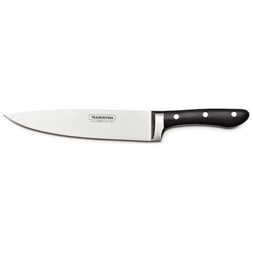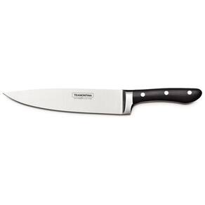 24161/008 Descrição Lâmina em aço inox 8" com fio liso. Cabo de policarbonato com fibra de vidro, injetado diretamente sobre a espiga da lâmina. A linha ProChef é perfeita para chefs e gourmets que querem encantar nas receitas. Feitas de aço de alta qualidade e com fio de longa durabilidade, as facas proporcionam cortes mais precisos, permitindo que seus pratos fiquem exatamente como você imaginou. Além disso, possuem cabos ergonômicos que têm perfeito equilíbrio com a lâmina. É por isso que, com a linha ProChef, a cozinha vai ser um lugar ainda mais especial para você. Dicas de uso e conservação Tenha cuidado ao manusear produtos cortantes e perfurantes e mantenha-os fora do alcance de crianças. Para garantir a durabilidade dos produtos, recomenda-se secá-los bem após a lavagem, mesmo sendo em máquina de lavar louças. Benefícios 1. Lâmina fabricada com aço inox de altíssima qualidade que, aliado ao eficiente tratamento térmico sub-zero, confere à faca uma grande resistência ao desgaste do fio. 2. Cabo de policarbonato com fibra de vidro, tem boa resistência a impactos. 3. Rebites de alumínio. 4. de 25 anos contra defeitos de fábrica. 5. Pode ir à máquina de lavar louças. Marca: Não Informado