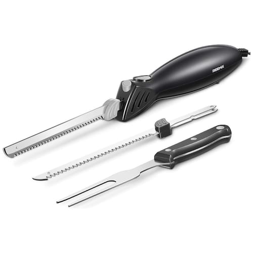 A Faca Elétrica Reemix Z3042 é a solução ideal para entalhar uma grande variedade de alimentos com facilidade e precisão. Equipada com duas lâminas serrilhadas de aço inoxidável de grau alimentício, uma para carnes e outra para pães, garantindo durabilidade e resistência contra corrosão. Seu potente motor de 100 watts e lâminas reciprocantes proporcionam um corte rápido e uniforme em carnes cozidas, cruas e congeladas, assados, aves, pães, frutas e vegetais. Além disso, conta com um cabo ergonômico, fio de 6 polegadas para maior estabilidade de corte, trava de segurança dupla e certificação de segurança ETL. Acompanha garfo para servir. Aproveite a praticidade e eficiência da Faca Elétrica Reemix Z3042 em suas refeições diárias!
