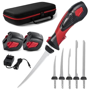 Especificações: Usos Recomendados do Produto: Pesca, Nome do Modelo: EK24-R, Característica Especial: Antiderrapante, Descrição de Faixa Etária: Adulto, Componentes Inclusos: Carregador, Material do Cabo: Plástico, Cor: Vermelho e Preto, Material da Lâmina: Aço Inoxidável, Reutilizável: Sim, Comprimento do Item: 22,0 centímetros, Fabricante: Pratuor, Peso do Item: 1,2 quilogramas, Número do Modelo: EK24, Baterias: 2 baterias de metal de lítio necessárias (incluídas) Voltagem:110 volts Marca: Não Informado