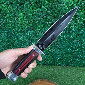 A faca possui um cabo de madeira e uma lâmina de aço inoxidável Para uma maior Durabilidade, Bainha de Nylon para Transporte e proteção do Fio de Corte de Dois Gumes Essa faca é versátil e adequada para uma variedade de tarefas. Com seu cabo confortável e lâmina afiada, ela proporciona um manuseio preciso e seguro.