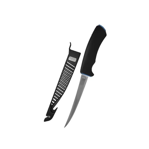 Um extraordinário produto da Marine Sports, esta faca fileteira é equipada com lâminas excepcionalmente afiadas feitas de aço inoxidável. Seu cabo ergonômico é revestido em borracha, proporcionando grande durabilidade e conforto.