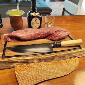 A faca integral forjada em aço carbono 5160 possui grande resistência, ótima retenção de fio e excelente corte. Por passar pelo processo de fosfatização o carbono é oxidado, ficando com a lâmina escura, proporcionando maior resistência contra a ferrugem do que o aço carbono comum. Produzida com lâmina de aproximadamente 9mm de dorso, com mosqueado feito a mão, tempera de excelente qualidade, garantindo precisão no corte e fio duradouro. Essa faca para churrasco possui cabo em osso, permitindo boa resistência e durabilidade. Este belo modelo de faca integral da Zanline é uma ótima opção para compor sua coleção ou presentear alguém especial. Cada detalhe dessa faca foi cuidadosamente produzido com materiais de ótima qualidade, proporcionando uma combinação perfeita entre funcionalidade e tradição.