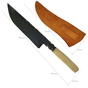 Dimensões da faca com bainha: 44,5cm (C) x 12cm (L) x 4cm (A).
