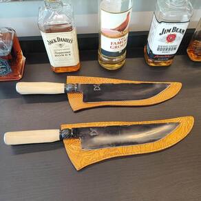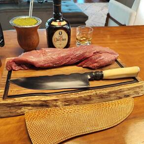 - Por ser produzida de forma artesanal, cada faca se torna única e exclusiva, pois cabo e bainha poderão ter tonalidades e marcações diferentes, além de pequenas variações de medidas.