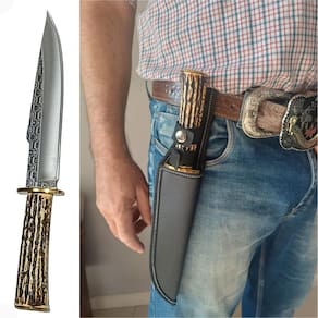 Peso da faca: 335 gramas; Comprimento total da faca: 31,0 cm; Comprimento da lâmina: 19,0 cm - 7,5 polegadas; Largura da lâmina: 3,5 cm; Espessura da lâmina: 4,0 mm; Comprimento do cabo: 12,0 cm; Material da lâmina: aço inox; Material do cabo: resina imitando osso; Cor da lâmina: prata; Formato da lâmina: clip point;