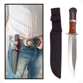 Faca cabo de madeira lâmina inox desenhada fulltang com bainha