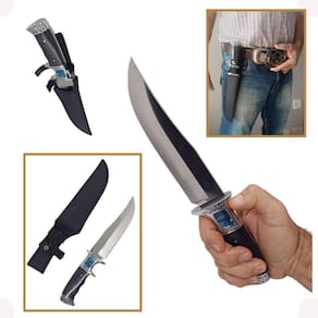 Faca inox pedra azul churrasco pesca com bainha Faca lâmina inox cabo resina imitando madeira pedra azul com bainha Ficha técnica: Peso da faca: 365 gramas; Comprimento total da faca: 30,0 cm; Comprimento da lâmina: 17,5 cm - 7,0 polegadas; Largura da lâmina: 4,0 cm; Espessura da lâmina: 4,0 mm; Comprimento do cabo: 12,5 cm; Material da lâmina: aço inox; Material do cabo: resina imitando madeira; Cor da lâmina: prata; Formato da lâmina: clip point; Estilo da faca: esportiva Bainha: acompanha bainha em nylon e com passante de cinto largo. Afiação da faca: este produto já vem de fábrica com boa afiação. Para conservação utilizar afiadores apropriados. Conservação / durabilidade: durabilidade indeterminada. Para melhor conservação guardar seca e limpa. Restrições / riscos: este produto é cortante e perfurante, por isso seu uso exige cuidados. Manter fora do alcance de crianças e menores de idade. Funções da faca: corte, perfuração. Uso: esportivo, pesca, camping, trilhas, aventuras na mata, churrasco, esportes outdoor, coleção, trabalho gerais. Marca: Não Informado Ean: 7892021068007