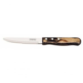 Faca Jumbo Tramontina 5 Aço Inox Cabo Castanho Polywood Talheres de qualidade deixam sua mesa muito mais convidativa. Um exemplo é a linha Polywood que, com seus cabos de madeira tratada, faz bonito em encontros mais informais. Recomendações de Uso: Antes do uso: Antes de utilizar o , remova as eventuais etiquetas e lave-o com água e de uso: Durante a lavagem use somente esponja macia, outros tipos de produtos, como palha de aço, poderão riscar ou prejudicar o brilho do aço inox. Enxágue bem a peça a fim de remover totalmente os resíduos dos produtos de limpeza, que por serem abrasivos, podem danificar o inox. Após a lavagem enxugue a peça, pois as substâncias químicas contidas na água poderão causar manchas. Sempre que possível use água quente, pois renova o brilho do talher. Evite o das peças com superfícies quentes, pois podem provocar a descoloração do produto. Quando usar a máquina de lavar louça, recomendamos retirar o talher logo que tenha terminado o ciclo enxaguar, a fim de que os mesmos sejam secados manualmente.- Tenha cuidado ao Manusear produtos cortantes e perfurantes e mantenha-os fora do alcance de crianças.- Foto meramente ilustrativa. Informações Adicionais: