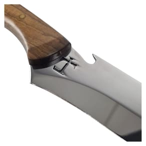 A faca kukri full tang é uma peça essencial para qualquer entusiasta de churrasco. Seu design robusto e afiado torna-a perfeita para cortar carnes com precisão e facilidade. A lâmina em aço carbono mantém seu fio por mais tempo, garantindo cortes suaves e uniformes. Além disso, o cabo ergonômico em madeira proporciona uma pegada confortável e segura, mesmo durante longos períodos de uso. Seja para cortar bifes suculentos ou fatiar vegetais para grelhados, esta faca artesanal de churrasco é a escolha ideal para suas aventuras culinárias ao ar livre.