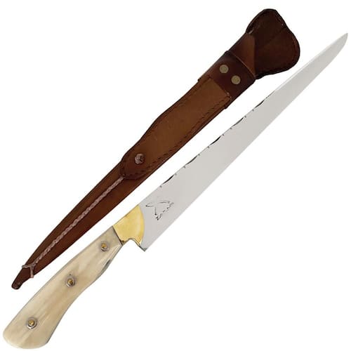 Faca Língua de Chimango 12' Aço inox 420c 4mm Cabo de Osso e Bainha de Couro Zanline.