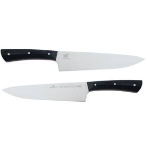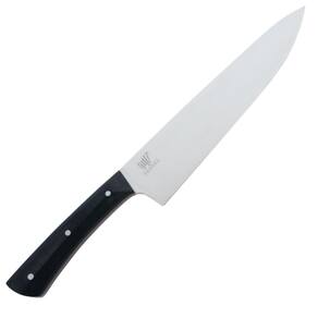 Faca do chef para ampla variedade de tarefas de cortes em carnes, aves, peixes, legumes e vegetais. Cabo de micarta um compósito feito a partir de camadas de tecidos (algodão, lona, linho ou papel) impregnadas com resina fenólica e prensadas sob alta pressão e temperatura.