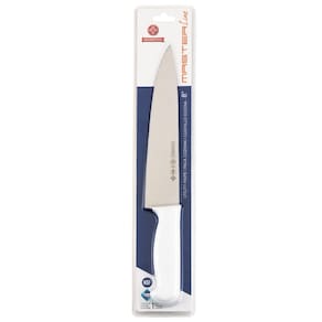 Esta faca para cozinha da linha Masterline Mundial é a protagonista da cozinha de quem ama preparar suas receitas! Sua lâmina de 8 polegadas é produzida em aço inox e possui fio de corte de alta durabilidade, devido ao tratamento térmico aplicado à lâmina. Seu cabo anatômico é em polipropileno branco, e proporciona um manuseio mais seguro e confortável. Além de tudo, é fácil de limpar e pode ir à máquina de lavar louças. Uma faca multiuso de qualidade e com um design perfeito para quem gosta de fazer bonito todos os dias!