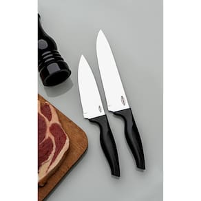 Conheça a Faca para Carne 8 polegadas (32,5 cm) com lâmina aço inoxidável polido cabo plástico preto Cross Brinox. É o produto ideal para todos os tipos de carne que completa a sua linha de facas do dia a dia. Com uma lâmina em aço inoxidável temperado com tratamento térmico e acabamento polido, a Faca para Carne é segura e durável, proporcionando uma excelente afiação por um longo período de tempo. Assim como as demais facas da linha Cross, a Faca para Carnes é durável e eficiente durante o uso. Os cabos ergonômicos em polipropileno, na cor preta possuem textura antiderrapante, são ideais para uso diário no preparo de diversos tipos de alimento, proporcionando maior praticidade durante o corte e limpeza da faca. A Faca para Carne possui lâmina forte e robusta indicada para fatiar, picar e cortar todos os tipos de carnes. E para completar a sua experiência na cozinha conheça também a linha completa de facas Cross, afiadores de facas Brinox e tábuas de bambu para corte Haus, você vai brilhar no preparo de alimentos. E para manter seus produtos sempre brilhando, lave-os com esponja macia e sabão ou detergente neutro. Para não riscar nem perder o brilho, não use produtos abrasivos como palha de aço. Conheça também os demais talheres avulsos e produtos das marcas Brinox, Coza e Haus Concept para deixar a sua casa ainda mais bonita com soluções completas de organização. O Grupo Brinox, com desenvolvimento e produção no Brasil, é um dos maiores fabricantes de utilidades domésticas do Brasil. Localizado na cidade de Caxias do Sul, na Serra Gaúcha e expandindo permanentemente a sua atuação no mercado externo, o Grupo Brinox possui canais de exportação nos cinco continentes e atua ativamente em mais de vinte países. Através de suas marcas, Brinox, Coza e Haus Concept, oferece um mix de mais de 6 mil itens, e segue com seus planos de expansão como um grande participante no mercado de utilidades domésticas.