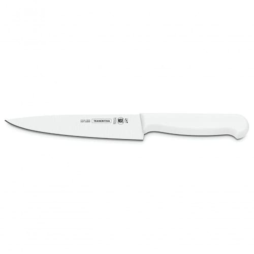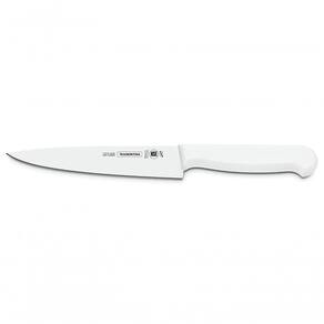 - Lâmina fabricada em aço inox de altíssima qualidade, que aliado ao eficiente tratamento térmico sub-, confere à faca grande resistência ao desgaste do fio.- Cabo de polipropileno com proteção antibacteriana, que inibe e reduz o crescimento de bactérias gram-positivas e fungos. Isso significa um produto mais limpo por mais tempo, trazendo benefícios em higiene e redução na população de microorganismos que causam contaminação. A tecnologia antibacteriana é incorporada durante o processo de fabricação dos produtos, na injeção dos cabos, e dura por toda a vida útil dos mesmos.- A lâmina com desbaste em V assegura um corte preciso e um excelente rendimento, mesmo depois de muitas afiações.- Certificado Internacional de Qualidade e Excelência: desde que a Tramontina obteve a certificação NSF (National Sanitation Fundation), vem utilizando junto à sua marca essa simbologia, que representa o reconhecimento de uma organização internacional e independente à linha de Facas Profissionais Tramontina.- Para evitar a formação de folgas ou frestas entre as partes e a retenção de resíduos, além de facilitar a limpeza, o cabo é injetado diretamente sobre a espiga da própria lâmina.