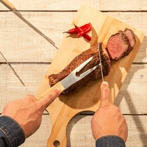 Faca para Churrasco Aço Inox e Cabo Bambu 37 cm Lyor