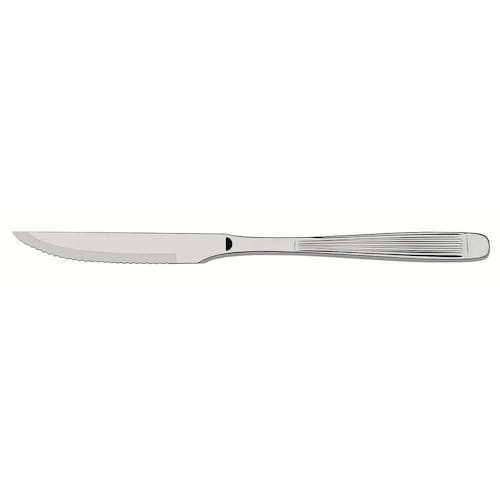 Faca totalmente temperada, que garante maior durabilidade no fio de corte e maior resistência à corrosão, e por sua característica de temperabilidade, não risca as porcelanas. Totalmente feita de aço inox, mantém suas características , preservando a beleza, a higiene e a durabilidade do material. Acabamento em brilho, com detalhes no cabo. Própria para uso diário combina com qualquer ambiente. Pode ser lavada diariamente na máquina de lavar louças.