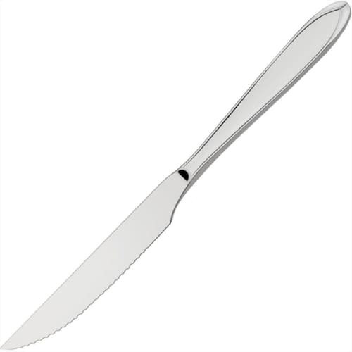Faca totalmente temperada, que garante maior durabilidade no fio de corte e maior resistência à corrosão, e por sua característica de temperabilidade, não risca as porcelanas. Totalmente feita de aço inox, mantém suas características , preservando a beleza, a higiene e a durabilidade do material. Acabamento em brilho, com detalhes no cabo. Própria para uso diário combina com qualquer ambiente. Pode ser lavada diariamente na máquina de lavar louças.