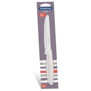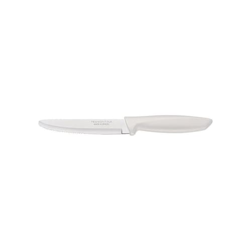 Faca Para Churrasco Jumbo 5" Plenus Tramontina Em Aço Inox Tramontina Faca para Churrasco Jumbo 5 Plenus Tramontina em Aço Inox Tramontina - Conforto e praticidade se encontram na linha Plenus, com peças que priorizam a leveza na hora de servir e comer. Além de kits para queijos, a linha oferece talheres com cinco opções de cores e facas que topam os mais diversos tipos de cortes. Para fazer bonito todos os dias.OrientaçõesCom fio serrilhado, é ideal para o corte de carnes assadas. A lâmina de aço inox têm maior durabilidade do fio devido ao tratamento térmico. O cabo de polipropileno possui maior resistência e durabilidade. Pode ir à máquina de lavar louças facilitando seu dia a dia.ObservaçõesAntes da primeira utilização, lave bem a peça e seque-a. Produto cortante e perfurante: tenha cuidado ao manusear e mantenha fora do alcance das crianças. Para maior durabilidade do produto recomenda-se secar bem antes de guardar, mesmo após lavagem em máquina. Recomenda-se o uso de tábuas de polipropileno ou madeira da Tramontina para maior durabilidade do fio da faca. Não é indicado o uso da faca para o corte de alimentos congelados. Para descarte dos produtos e embalagens siga as orientações de reciclagem vigentes.Características GeraisEAN137891112225534DUN1417891112225531NCM8211.91.00Peso Líquido0,0500 kg.Peso Bruto0,0600 kg.Metragem0,000346 m.Dimensões Embalagem (Compr. X Larg. X Alt.)22x 55x 286 mm.Dimensões Produto (Compr. X Larg. X Alt.)235x 30x 17 mm.Cor 1D9D9D6 Hexa Características Gerais do Produto: Garantia: - 1 Ano