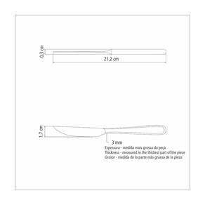 Faca totalmente temperada, que garante maior durabilidade no fio de corte e maior resistência à corrosão, e por sua característica de temperabilidade, não risca as porcelanas.