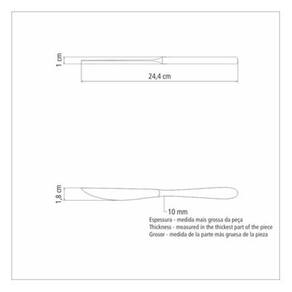 Modo de Uso: Use apenas sabão ou detergente e uma esponja macia. Outros tipos de produtos, como palha de aço, poderão riscar ou prejudicar o brilho dos talheres. Enxágue bem cada peça a fim de remover totalmente os resíduos dos produtos de limpeza, que, por serem abrasivos, podem atacar o inox. Sempre que possível, use água quente, pois renova o brilho do talher. Qualquer faca, independentemente de marca, para manter o fio de corte, é fabricada em aço com maior teor de carbono e, por isso, é menos resistente à corrosão. Assim, pedimos uma atenção especial para este artigo, pois estará mais propenso aos problemas citados. Usando máquina de lavar louças retire os talheres logo que tenha terminado o ciclo"enxaguar".