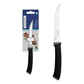 Tenha um churrasco impecável com a Faca para churrasco Tramontina Felice com lâmina de aço inox com fio liso e cabo de polipropileno preto de 5 polegadas. Ideal para cortes precisos de carnes suculentas, sua lâmina resistente garante durabilidade e desempenho, proporcionando cortes perfeitos em qualquer tipo de carne. O cabo ergonômico oferece segurança e conforto ao manusear, tornando o momento de churrasco ainda mais prazeroso. Além disso, a faca pode ser lavada na máquina de lavar louça, trazendo praticidade ao seu dia a dia de churrasqueiro.