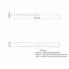Totalmente feita de aço inox, altamente durável, mantém suas características , preservando a beleza, a higiene e a durabilidade do totalmente temperada, que garantem maior durabilidade no fio de corte e maior resistência à corrosão, e por suas características de temperabilidade, não risca as cabo da faca se adapta melhor a palma da mã equilíbrio harmônico entre o cabo e a lâmina.Acabamento em alto brilho, com detalhes no ser lavada diariamente na máquina de lavar louças.