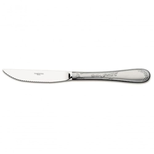 - Em aço inoxidável, altamente durável, mantém as características , preservando a beleza, a higiene e a durabilidade do material.- Faca com lâmina temperada, proporcionando resistência à corrosão e durabilidade no fio de corte. Por sua característica de temperabilidade, não risca as porcelanas.- Linha de talheres Design Collection.- Design arrojado, com detalhes florais em alto-relevo.- Pode ser lavada, diariamente, à máquina de lavar louças.- Acabamento do aço inox em brilho Na Lâmina e em fosco no cabo. Ean: 7891116048818