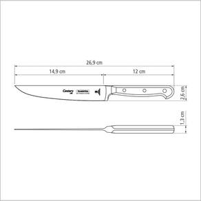 Faca para Cozinha Tramontina Century com Lâmina em Aço Inox e Cabo de Policarbonato e Fibra de Vidro 6" Torne o seu dia a dia na cozinha ainda mais prático e permita que as suas receitas fiquem mais saborosas com a Faca para Cozinha Tramontina Century com Lâmina em Aço Inox e Cabo de Policarbonato e Fibra de Vidro 6 polegadas da linha Century. Para oferecer alta durabilidade e qualidade, a sua lâmina é produzida em aço inox, com cabo em policarbonato com fibra de vidro. A Faca para Cozinha recebe tratamento térmico composto por têmpera (aquecimento da lâmina), sub-zero (resfriamento de -50° C a -196° C ) e revenimento (aumento da flexibilidade do aço especial), proporcionando vida longa a lâmina. Para tornar o manuseio ainda mais seguro e confortável, o cabo é anatômico e ergonômico. A escolha ideal para quem não dispensa produtos de qualidade e funcionais. Informações Gerais Com lâmina rígida e estreita, facilita o corte de diversos alimentos. A lâmina forjada de aço inox especial garante um fio com maior durabilidade e precisão. A lâmina possui tratamento térmico diferenciado, composto por têmpera, sub-zero e revenimento. E conta com dureza da lâmina de 55 e 58 HRC, que garante maior resistência do fio e precisão no corte. O cabo de policarbonato reforçado com fibra de vidro garante alta durabilidade, equilíbrio e segurança. O cabo ergonômico proporciona maior segurança, equilíbrio e conforto na hora do corte. Pode ir à máquina de lavar louças facilitando seu dia a dia.