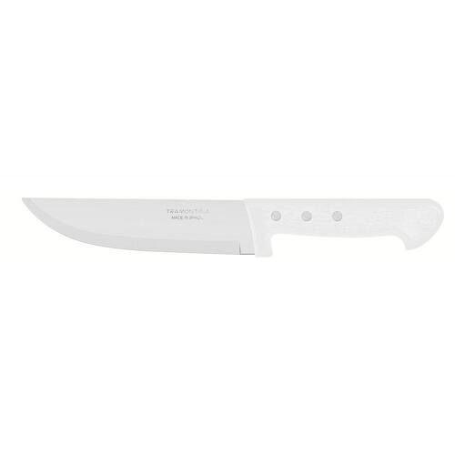 A Faca para Cozinha Tramontina Plenus com Lâmina em Aço Inox e Cabo de Polipropileno Branco 6 Polegadas é um modelo versátil e estiloso que embeleza sua cozinha. A lâmina em aço inox possui 6 polegadas. Cabo de polipropileno na cor branca, é resistente e confortável no manuseio e possui rebites em alumínio. Prática e fácil de limpar pode ser usada na máquina de lavar louças. É uma faca que se encaixa em diferentes preparações na cozinha. Orientações A lâmina de aço inox têm maior durabilidade do fio devido ao tratamento térmico. O cabo de polipropileno possuem maior resistência e durabilidade. Rebites de alumínio.Pode ir à máquina de lavar louças facilitando seu dia a dia. Características Gerais EAN13 7891112046351 DUN14 17891112046358 NCM 8211.92.10 Peso Líquido 0,0755 kg. Peso Bruto 0,1050 kg. Metragem 0,000332 m³. Dimensões Embalagem (Compr. X Larg. X Alt.) 15x 67x 330 mm. Dimensões Produto (Compr. X Larg. X Alt.) 275x 39x 14 mm. Espessura 1,2 mm. Cor 1 FFFFFF Hexa Observações Antes da primeira utilização, lave bem as peças e seque-as. Tenha cuidado ao manusear produtos cortantes e perfurantes e mantenha-os fora do alcance de crianças. Para maior durabilidade dos produtos, recomenda-se secar bem antes de guardar, mesmo após lavagem em máquina.Para descarte dos produtos e embalagens siga as orientações de reciclagem vigentes.