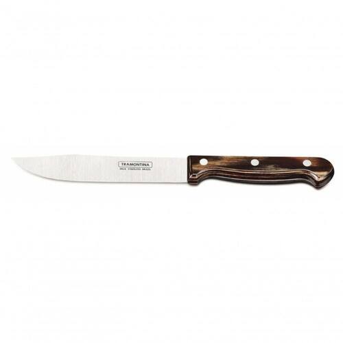 Faca Para Cozinha Tramontina Polywood 6 Aço Inox Castanho Talheres de qualidade deixam sua mesa muito mais convidativa. Um exemplo é a linha Polywood que, com seus cabos de madeira tratada, faz bonito em encontros mais informais. Recomendações de Uso: Antes do uso: Antes de utilizar o , remova as eventuais etiquetas e lave-o com água e de uso: Durante a lavagem use somente esponja macia, outros tipos de produtos, como palha de aço, poderão riscar ou prejudicar o brilho do aço inox. Enxágue bem a peça a fim de remover totalmente os resíduos dos produtos de limpeza, que por serem abrasivos, podem danificar o inox. Após a lavagem enxugue a peça, pois as substâncias químicas contidas na água poderão causar manchas. Sempre que possível use água quente, pois renova o brilho do talher. Evite o das peças com superfícies quentes, pois podem provocar a descoloração do produto. Quando usar a máquina de lavar louça, recomendamos retirar o talher logo que tenha terminado o ciclo enxaguar, a fim de que os mesmos sejam secados manualmente. Tenha cuidado ao manusear produtos cortantes e perfurantes e mantenha-os fora do alcance de crianças.- Foto meramente ilustrativa.- Embalagem blister. Informações Adicionais: