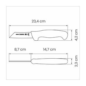 Qualidade e durabilidade para profissionais que trabalham muito. Com tecnologia de ponta, as facas profissionais estão sempre preparadas para entrar em ação e fazer bonito com qualquer ingrediente. Eficiência é o que não falta. A altíssima qualidade das lâminas, resultado do tratamento térmico composto por têmpera (aquecimento da lâmina), subzero (resfriamento de 50 a 196 graus negativos) e revenimento (aumento da elasticidade do aço) garante vida longa e eficiente. A anatomia e ergonomia do cabo de polipropileno texturizado, injetado diretamente sobre a espiga da lâmina, oferecem segurança e conforto durante o manuseio. A proteção antimicrobiana inibe e reduz o crescimento de bactérias e fungos. Essa tecnologia é incorporada durante o processo de fabrição do cabo e dura por toda vida útil do produto, mas não não elimina a necessidade de lavá-los.