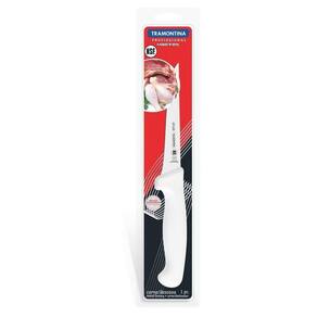 Faca Para Desossar 5" Tramontina Cabo Branco Tramontina Faca para desossar 5 Tramontina Cabo Branco Tramontina - Qualidade e durabilidade para profissionais que trabalham muito. Com tecnologia de ponta, as facas profissionais estão sempre preparadas para entrar em ação e fazer bonito com qualquer ingrediente. Eficiência é o que não falta. A altíssima qualidade das lâminas, resultado do tratamento térmico composto por têmpera (aquecimento da lâmina), subzero (resfriamento de 50 a 196 graus negativos) e revenimento (aumento da elasticidade do aço) garante vida longa e eficiente. A anatomia e ergonomia do cabo de polipropileno texturizado, injetado diretamente sobre a espiga da lâmina, oferecem segurança e conforto durante o manuseio. A proteção antimicrobiana inibe e reduz o crescimento de bactérias e fungos. Essa tecnologia é incorporada durante o processo de fabrição do cabo e dura por toda vida útil do produto, mas não não elimina a necessidade de lavá-los.OrientaçõesLâmina de aço inox DIN 1.4110. Cabo de polipropileno.ObservaçõesUSO SEGURO E ADEQUADO: Produtos cortantes e perfurantes, tenha cuidado ao manusear e mantenha fora do alcance das crianças. Para maior durabilidade dos produtos recomenda-se secar bem depois de lavar, mesmo após lavagem em máquina de lavar. Para descarte dos produtos e embalagens sigas as orientações de reciclagem vigentes.Características GeraisEAN137891112054288DUN1417891112054285NCM8211.92.10Peso Líquido0,0870 kg.Peso Bruto0,1134 kg.Metragem0,000634 m.Dimensões Embalagem (Compr. X Larg. X Alt.)24x 75x 352 mm.Dimensões Produto (Compr. X Larg. X Alt.)277x 41x 22 mm.Espessura2,5 mm.Cor 1FFFFFF Hexa Características Gerais do Produto: Garantia: - 1 Ano