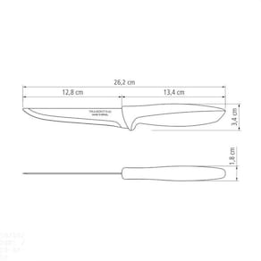 Pode ir à máquina de lavar louças facilitando seu dia a dia.Características GeraisEAN137891112225732DUN1417891112225739NCM8211.92.10Peso Líquido0,0604 kg.Peso Bruto0,0754 kg.Metragem0,000425 m.Dimensões Embalagem (Compr. X Larg. X Alt.)19x 65x 344 mm.Dimensões Produto (Compr. X Larg. X Alt.)262x 34x 18 mm.Cor 153565A HexaObservações