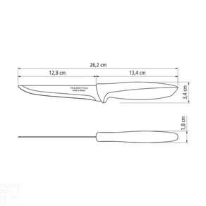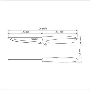 Tenha em sua cozinha a Faca para Desossar Tramontina Plenus com Lâmina em Aço Inox e Cabo de Polipropileno Cinza 5 Polegadas da Linha Plenus. Ideal para limpeza de ossos e tirar gorduras, ela auxilia você nas receitas com diferentes tipos de carnes. Possui uma resistente lâmina de 5 polegadas em aço inox e cabo de polipropileno na cor cinza. É um produto que traz conforto e praticidade para as tarefas na cozinha. Linha Plenus é a Tramontina pensando no melhor para sua cozinha! Orientações Ideal para separar a carne dos ossos e tirar a gordura.A lâmina de aço inox têm maior durabilidade do fio devido ao tratamento térmico. O cabo de polipropileno possui maior resistência e durabilidade. Pode ir à máquina de lavar louças facilitando seu dia a dia. Características Gerais EAN13 7891112225732 DUN14 17891112225739 NCM 8211.92.10 Peso Líquido 0,0604 kg. Peso Bruto 0,0754 kg. Metragem 0,000425 m³. Dimensões Embalagem (Compr. X Larg. X Alt.) 19x 65x 344 mm. Dimensões Produto (Compr. X Larg. X Alt.) 262x 34x 18 mm. Cor 1 53565A Hexa Observações Antes da primeira utilização, lave bem a peça e seque-a. Produto cortante e perfurante: tenha cuidado ao manusear e mantenha fora do alcance das crianças. Para maior durabilidade do produto recomenda-se secar bem antes de guardar, mesmo após lavagem em máquina. Recomenda-se o uso de tábuas de polipropileno ou madeira da Tramontina para maior durabilidade do fio da faca. Não é indicado o uso da faca para o corte de alimentos congelados. Mantenha sempre sua faca afiada utilizando os afiadores da Tramontina.Para descarte dos produtos e embalagens siga as orientações de reciclagem vigentes.